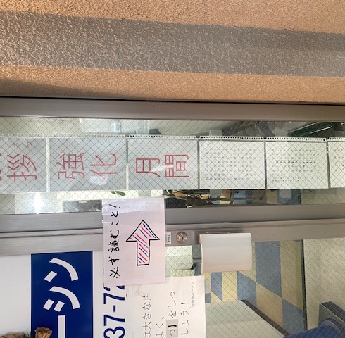 最近、入口扉を開ける時(特に帰る時)に何も挨拶をしない子が、増えています。先生がいる時(こちらから挨拶すると)返事はしますが、授業中や席を外している時には、黙って入って来る又は帰るのを多々、見受けます。挨拶は「されるからするもの」ではなく、「双方が自主的にするもの」です。先生がその場にいないからといって手を抜かないで下さい。もちろん帰る時も同じです。