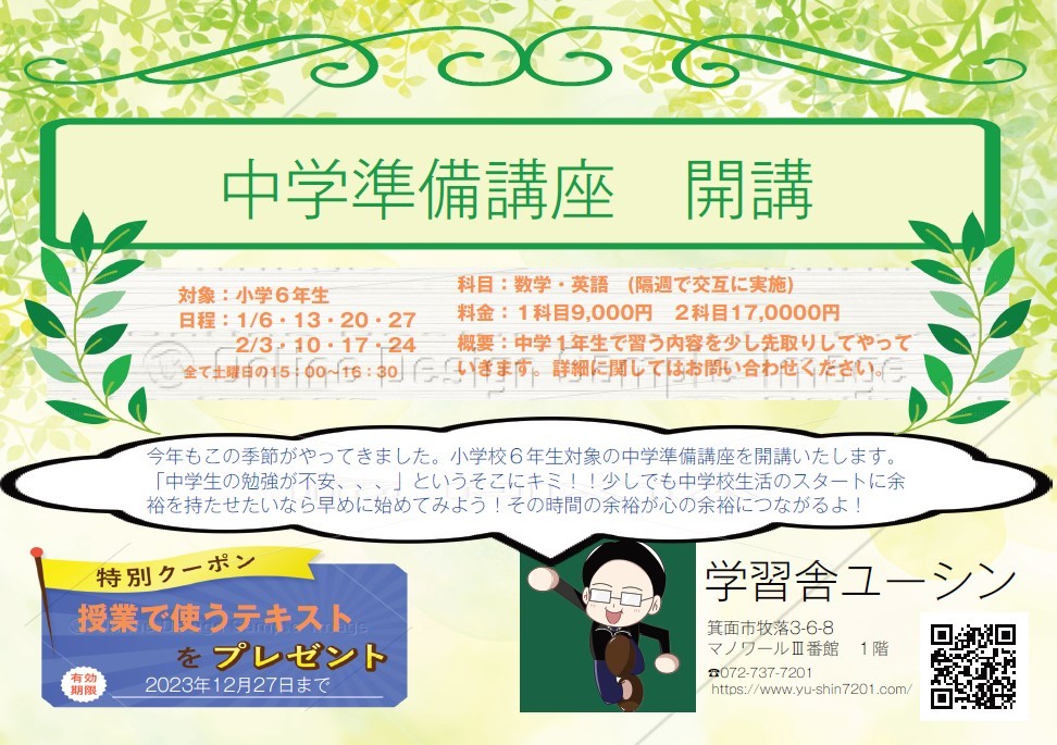 この講座は、中学生になったら塾を探そうと思っている人には絶好のチャンスです。